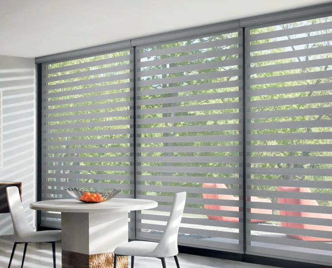 Blinds consist of soft horizontal slats - typically wood, faux wood, aluminium or vinyl - that tilt to allow customisable visibility and light control. Partially open lets some brightness filter through while maintaining privacy. Fully closed-off dark rooms are ideal for optimal movie-watching or restful sleep. No struggling with heavy opaque curtains repeatedly.