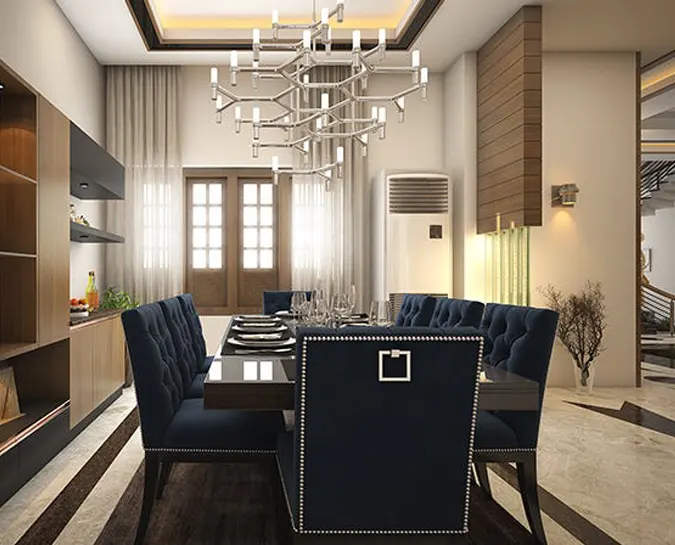 By custom design and making, dining room interior design can be in perfect combination with modular kitchen. Intera provides you with a comfortable design that matches your requirements. Take a look at some of our products for your dining room in this page to customize and include in your home interiors package. We have an endless variety of dining room interior design decors to give your dining room the makeover it deserves with gorgeous and beautiful updates for walls, lighting, and exclusive furniture.
